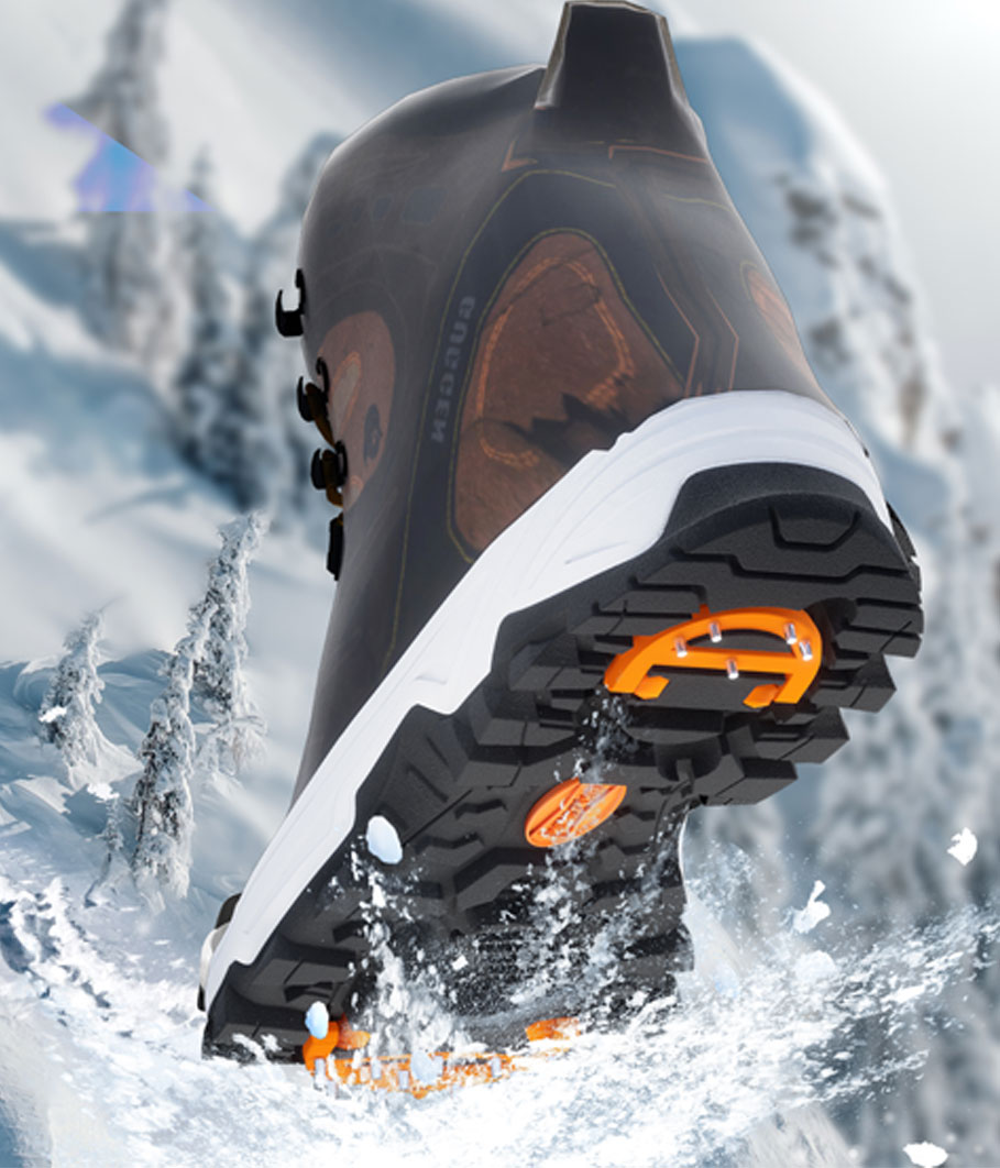 Ice-Grip Rubber + Rotating Steel Claw Sole System